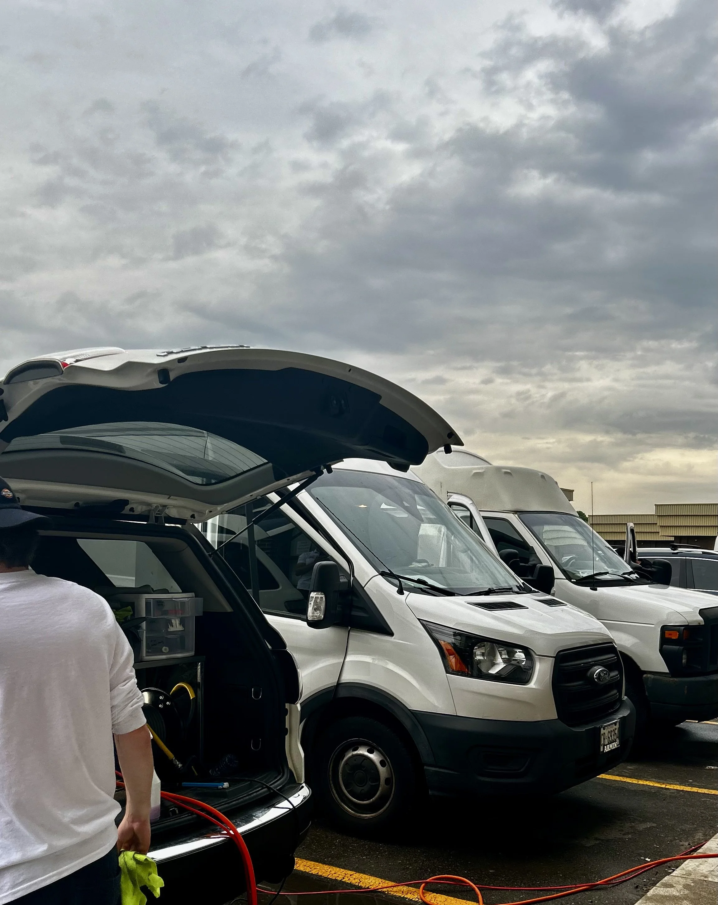 We schedule a block, set up in your lot, and work through your fleet with a clear per-vehicle menu.